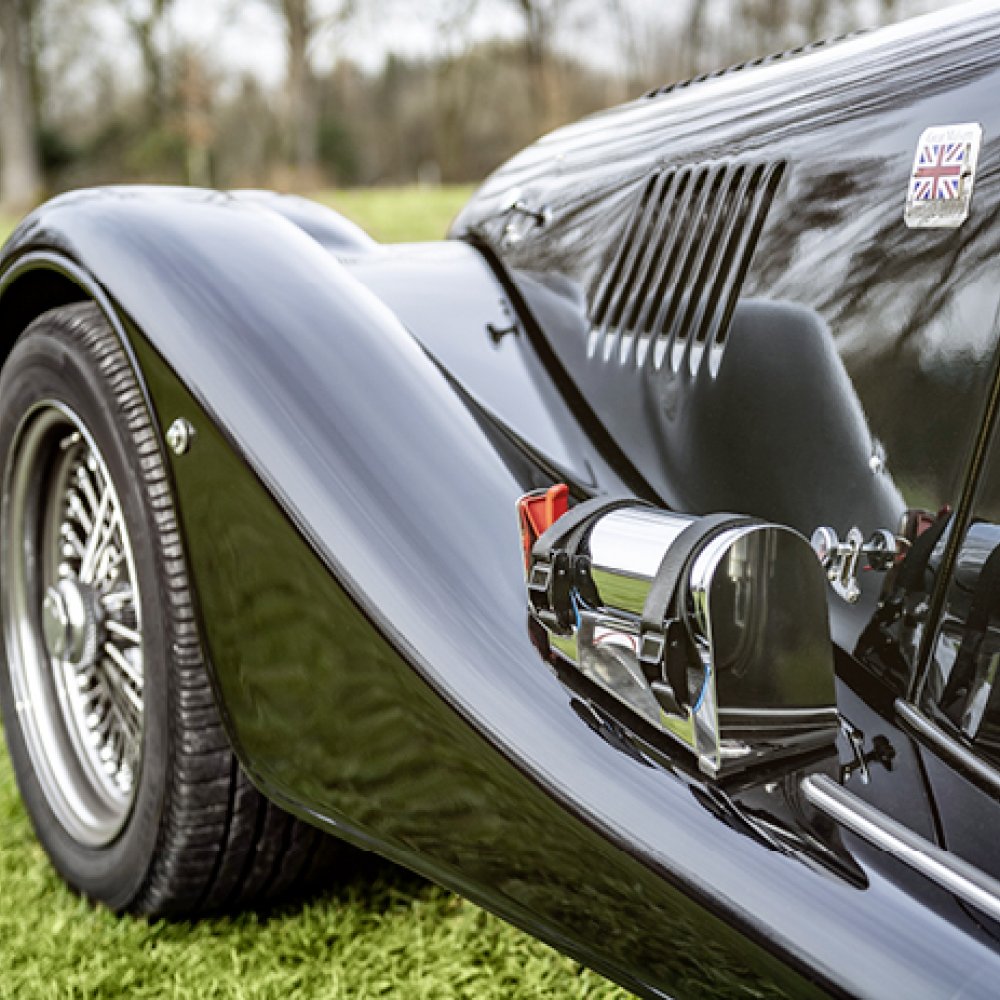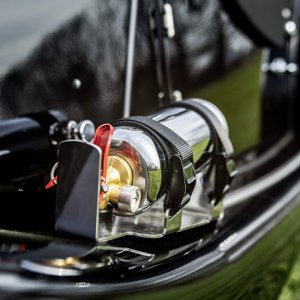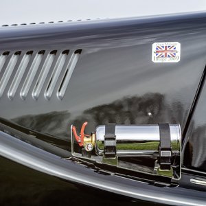Ein Feuerlöscher ist ein Feuerlöscher ist ein Feuerlöscher. Nicht so dieser. Er ist nämlich nicht nur notwendig, sondern auch noch hübsch anzusehen. Dafür haben wir sein gesamtes Ein-Kilogramm-Gehäuse sorgfältig verchromt und ihm Armaturen aus goldgelbem Messing gegeben. So beruhigt er nicht nur durch seine reine Anwesenheit für den Fall der Fälle, sondern auch das Auge durch sein edles Erscheinungsbild. Damit im Ernstfall dennoch die richtigen Griffe schnell zur Hand sind, haben wir seine Bedienelemente rot lackiert. So ersticken Sie Brände wirkungsvoll noch während sie entstehen und die Kritik von Designpuristen im Keim. Die Schraubmontage auf dem linken Kotflügel spart nicht nur Platz im Fahrzeug, sondern auch wertvolle Zeit, wenn es drauf ankommt: Egal, ob es am eigenen Fahrzeug kokelt oder der Alleebaum am Straßenrand vor sich hin schwelt – erste Hilfe ist schnell zur Hand. Ein Feuerlöscher eben. Made für Morgan.