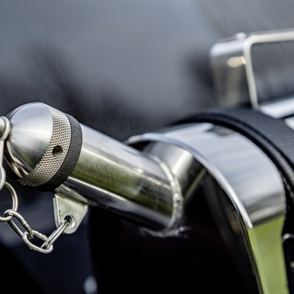 - Aus dem Vollen gedrehte Verschlussschraube mit Edelstahlketten-Sicherung für die Verwendung mit dem werkseitigen Steckstift